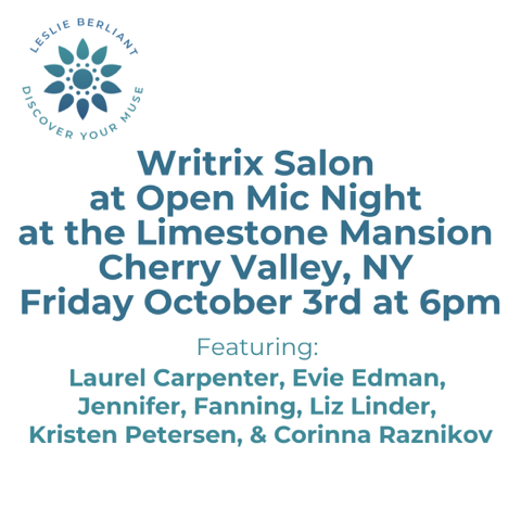 Leslie Berliant is a poet, author, and writing teacher published in journals, magazines and the anthologies Big City Mantra and Deliver Us. She offers writing courses, retreats, and private writing coaching. She hosts Writrix Salons, monthly readings of original written work, and is the editor and publisher at Writrix Press. www.leslieberliant.com